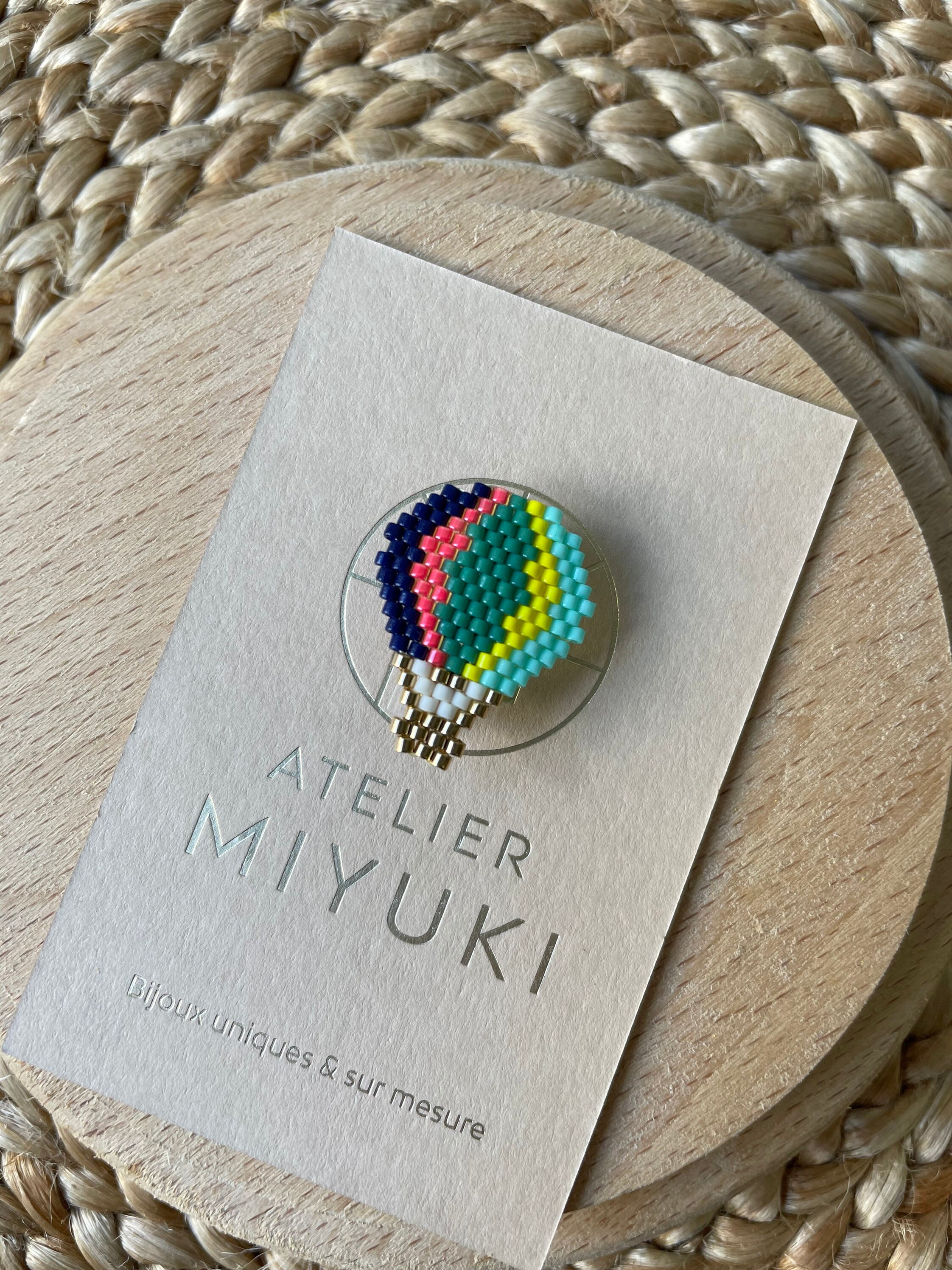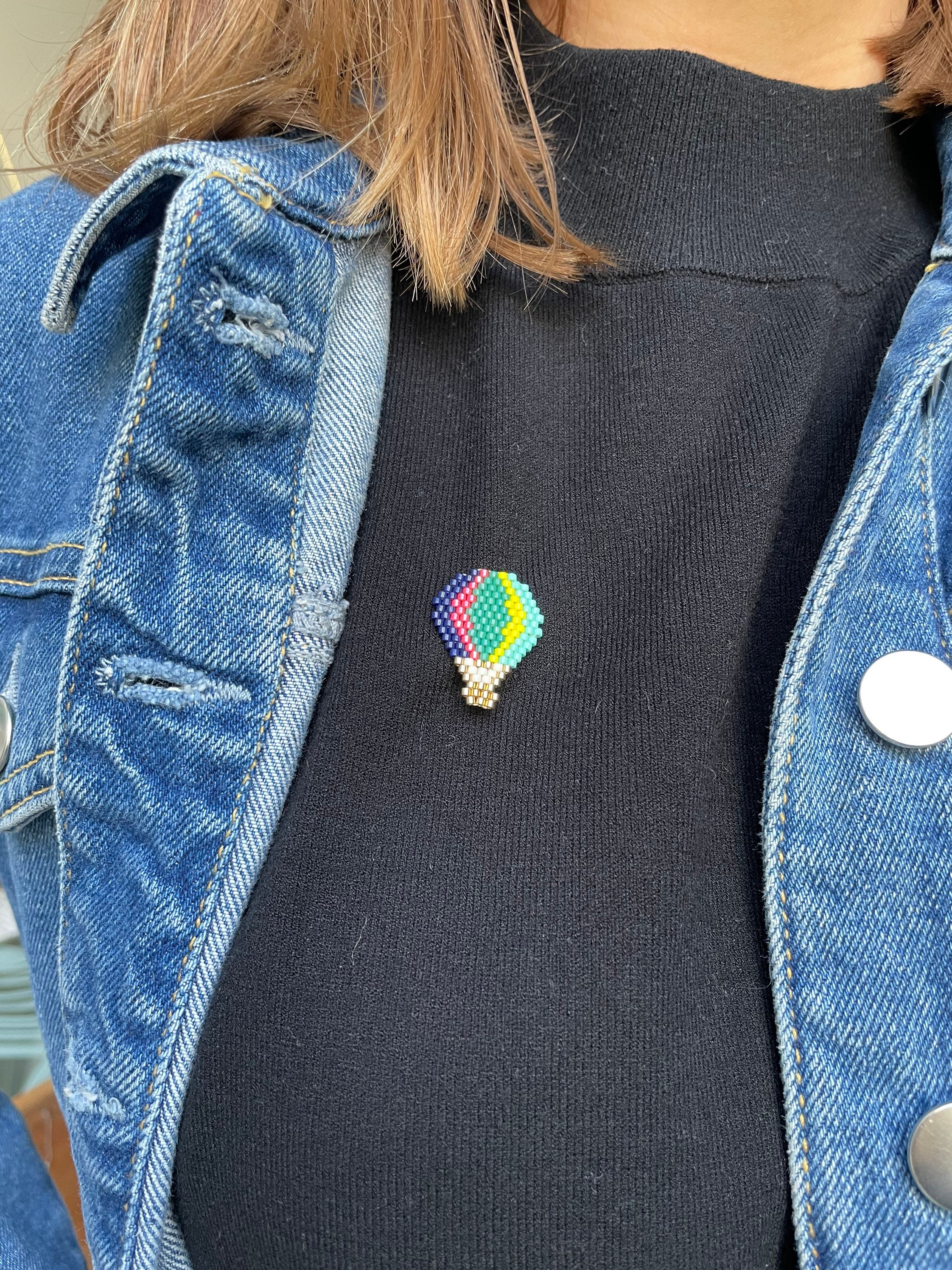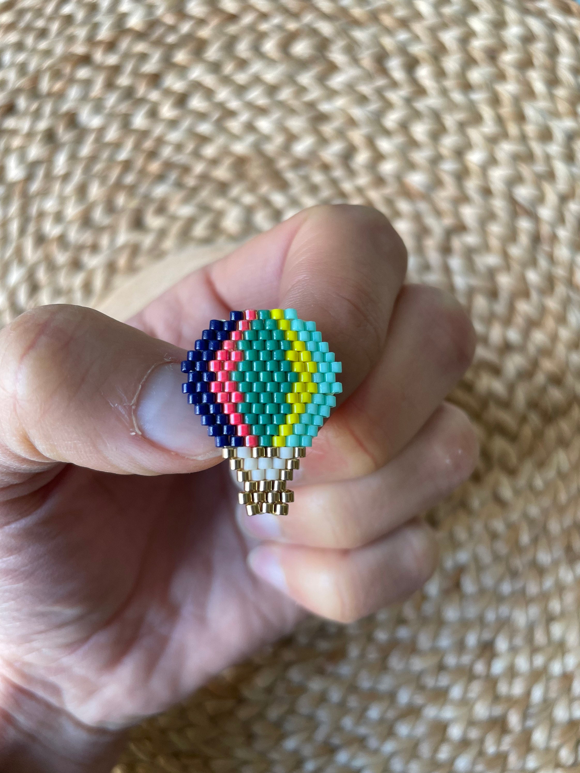 Hot air balloon brooch made of glass beads (Miyuki beads)