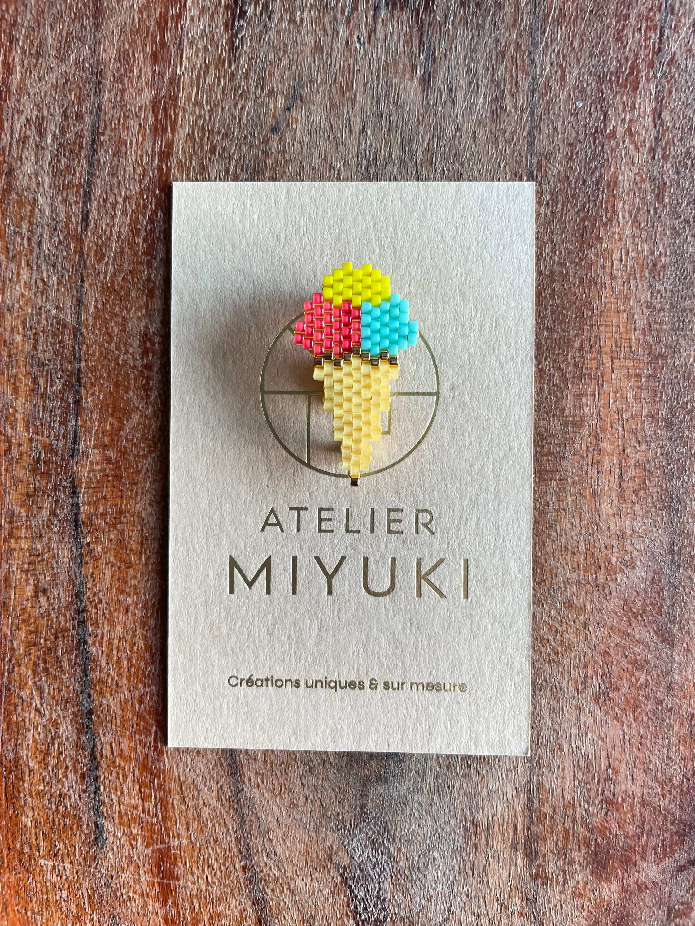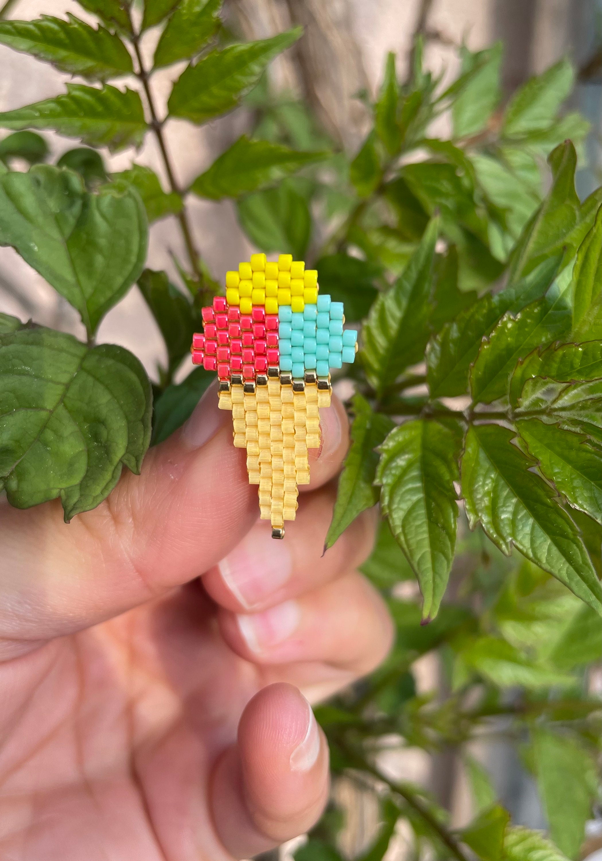 Ice Cream Cornet brooch made of glass beads (Miyuki beads)