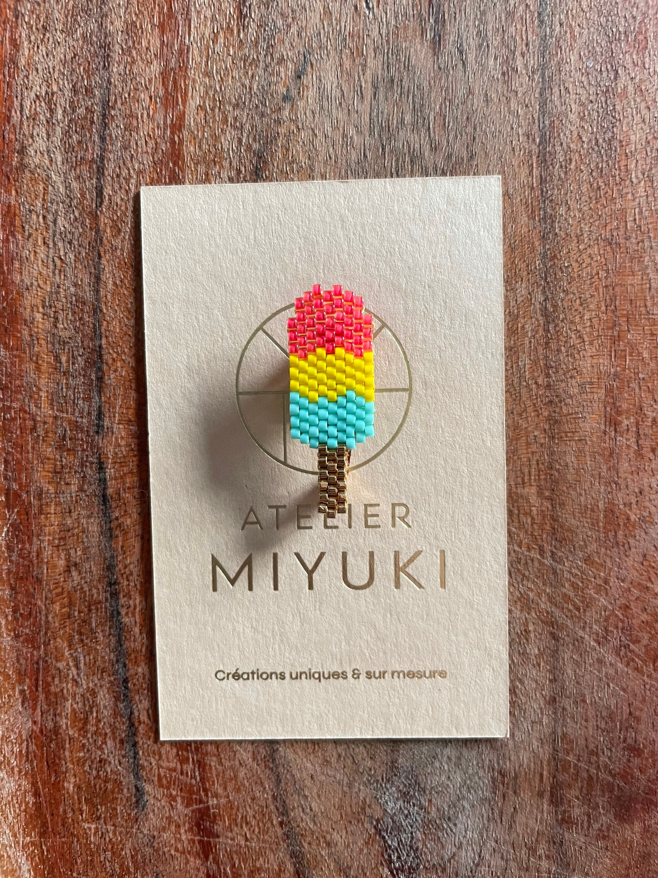 Glazed Stick brooch made of glass beads (Miyuki beads)