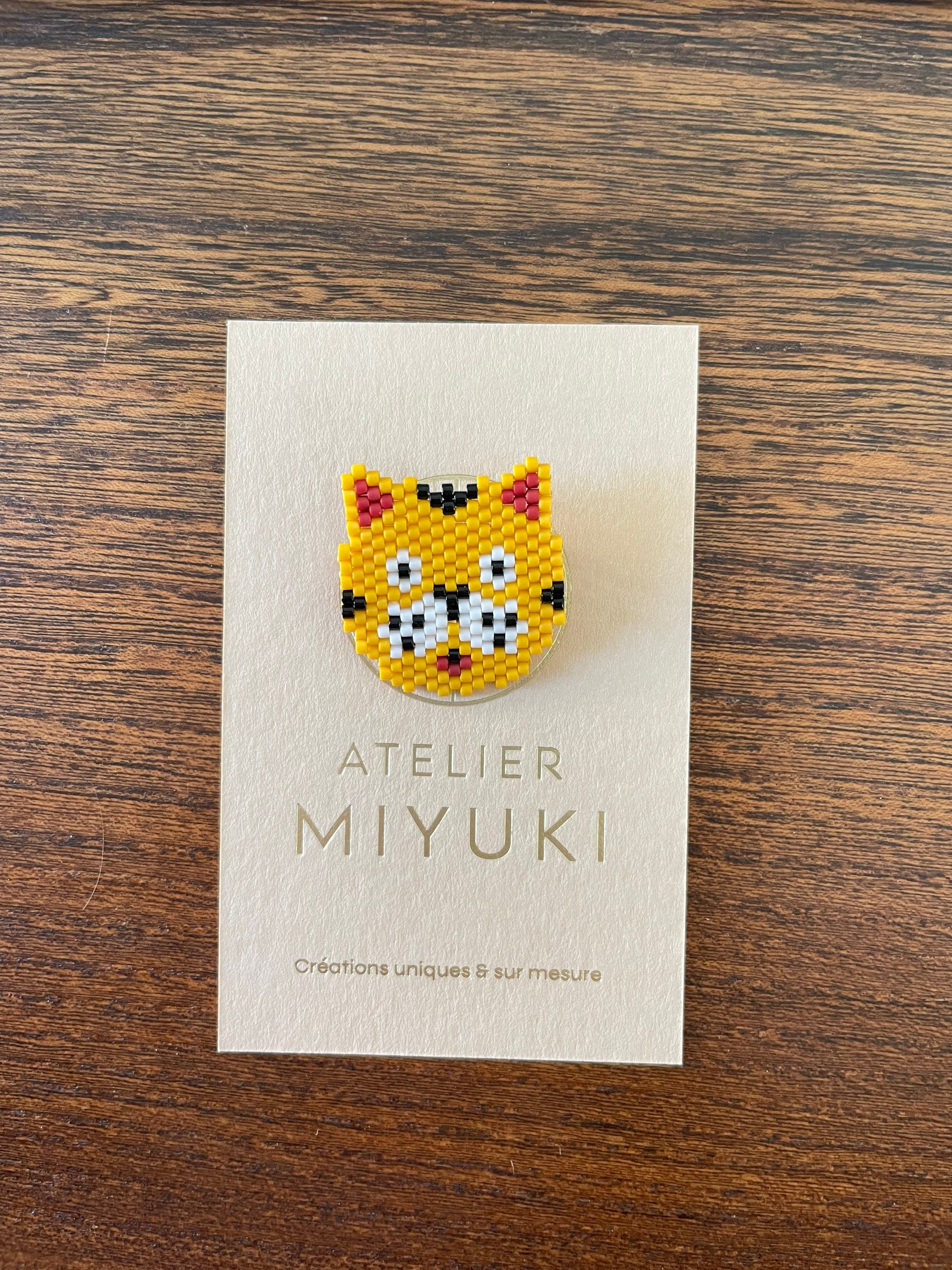 Tiger Cat brooch made of glass beads (Miyuki beads)