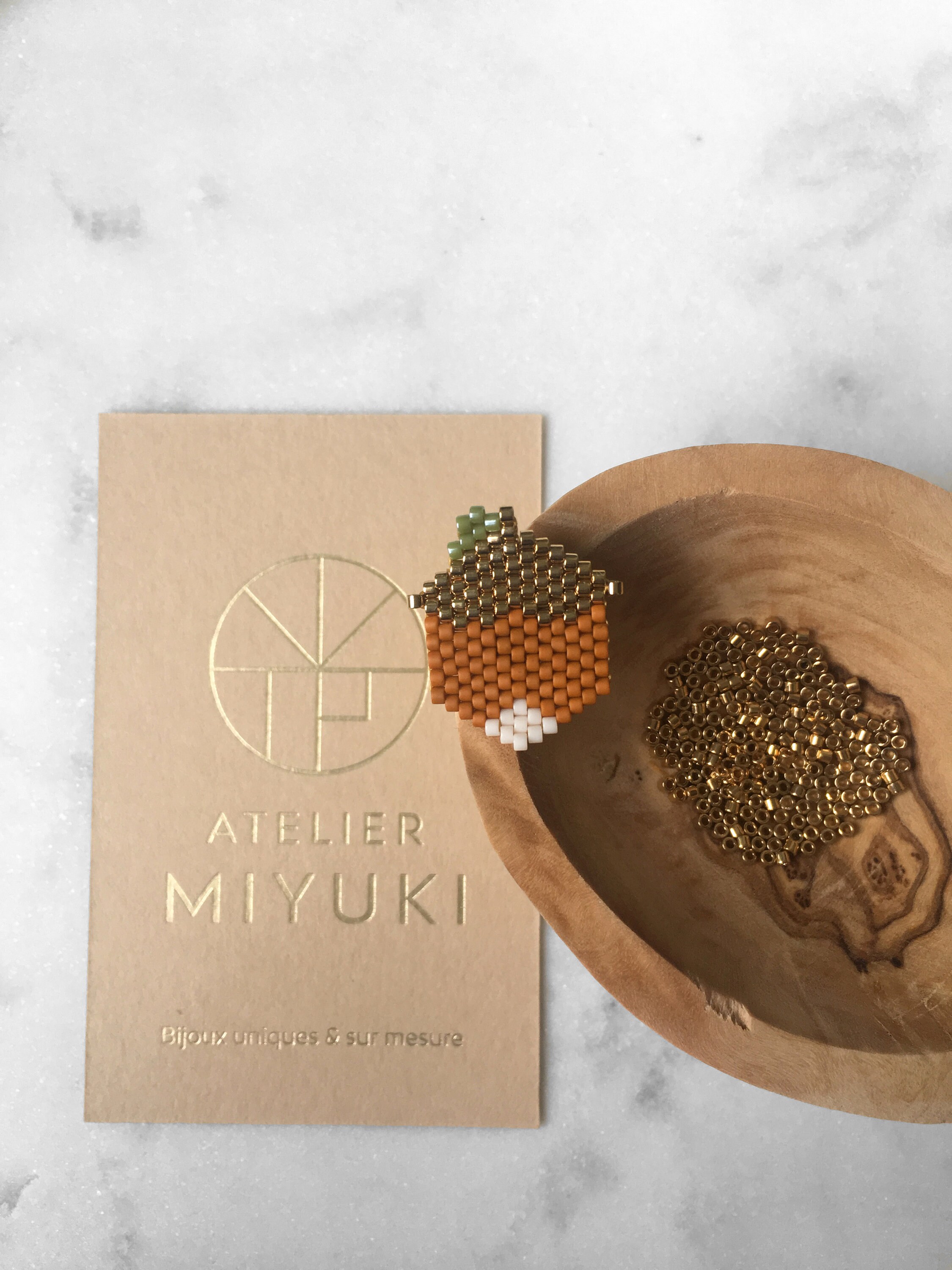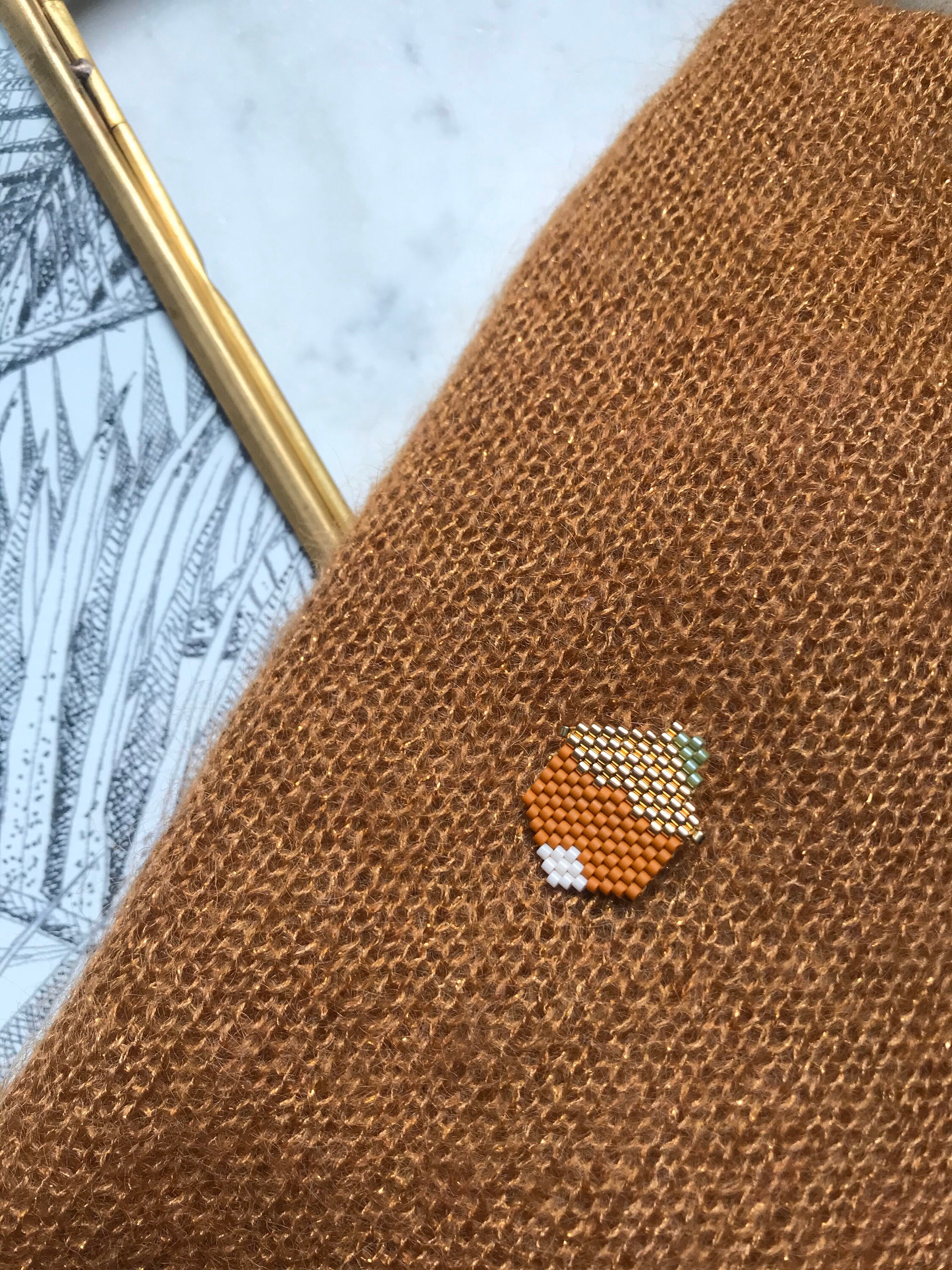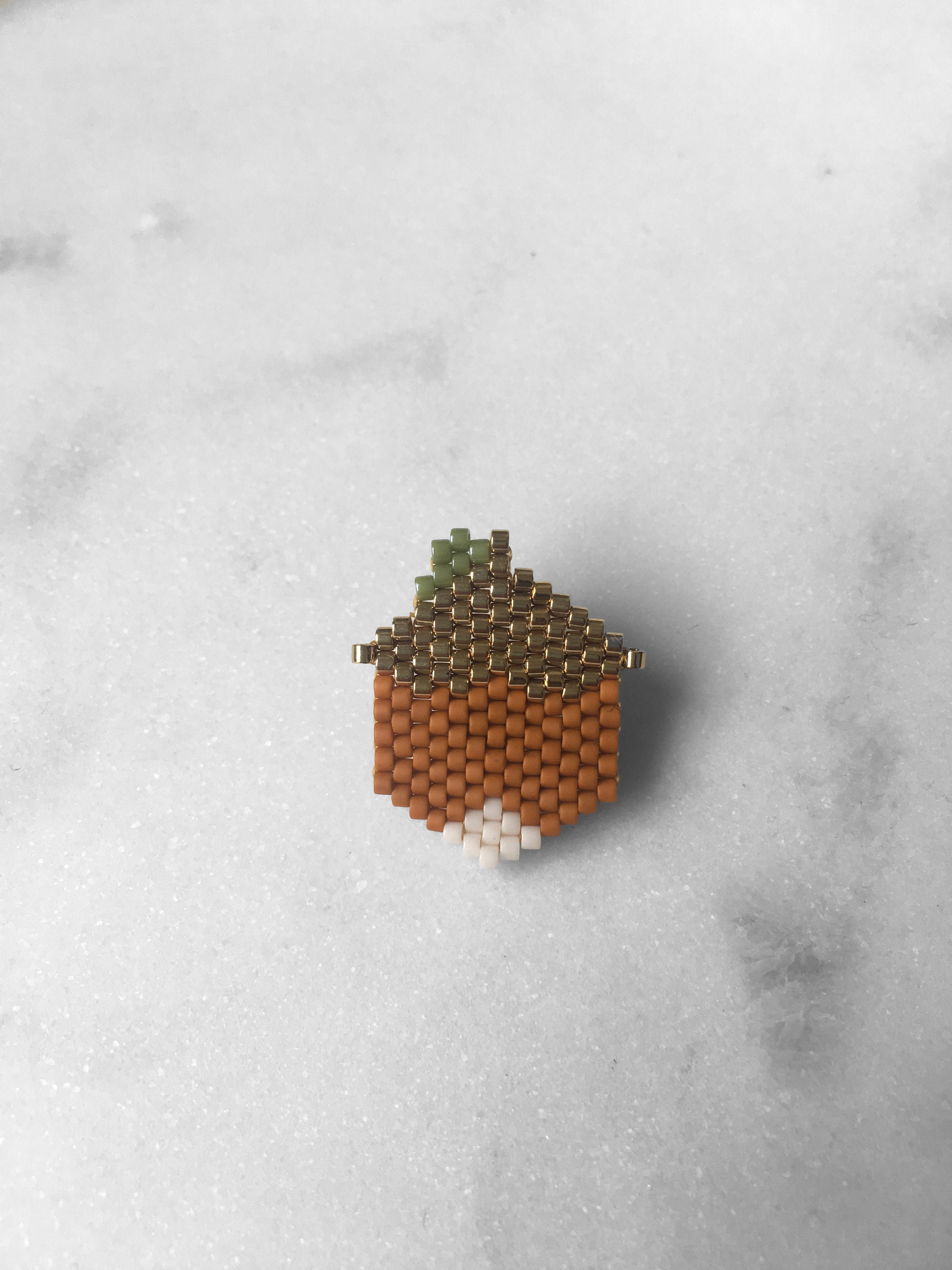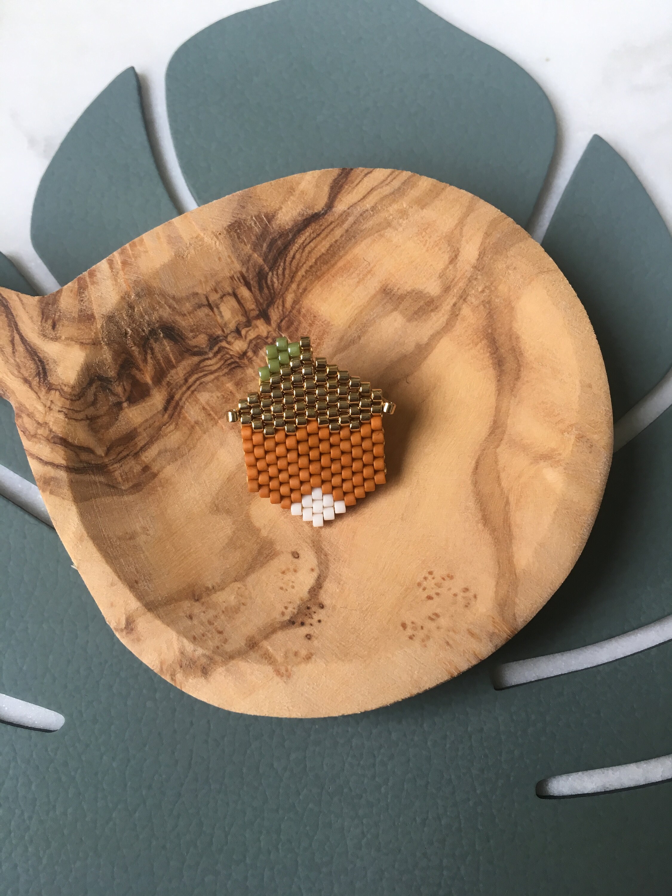Small hazelnut-shaped brooch made of glass beads (Miyuki beads)