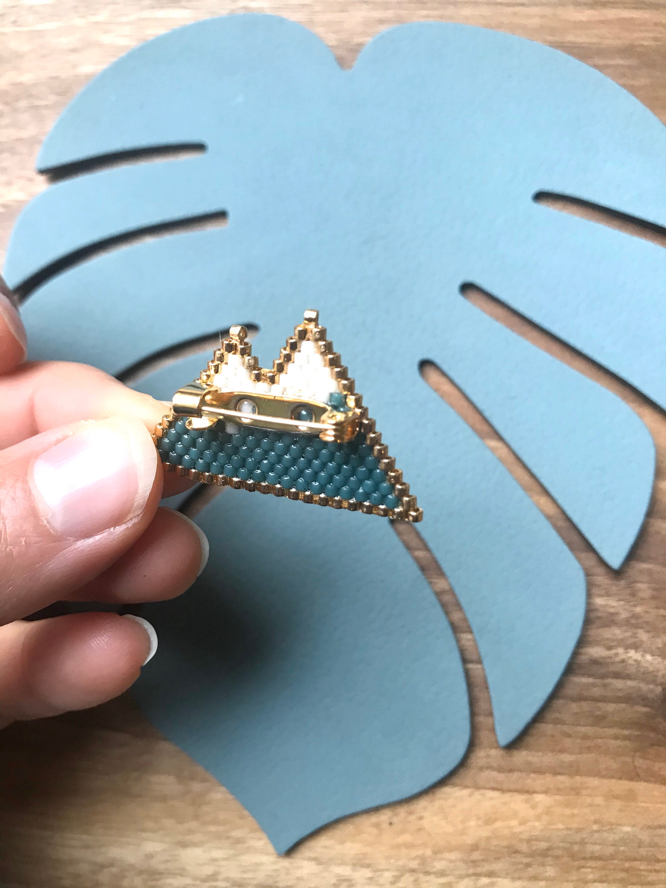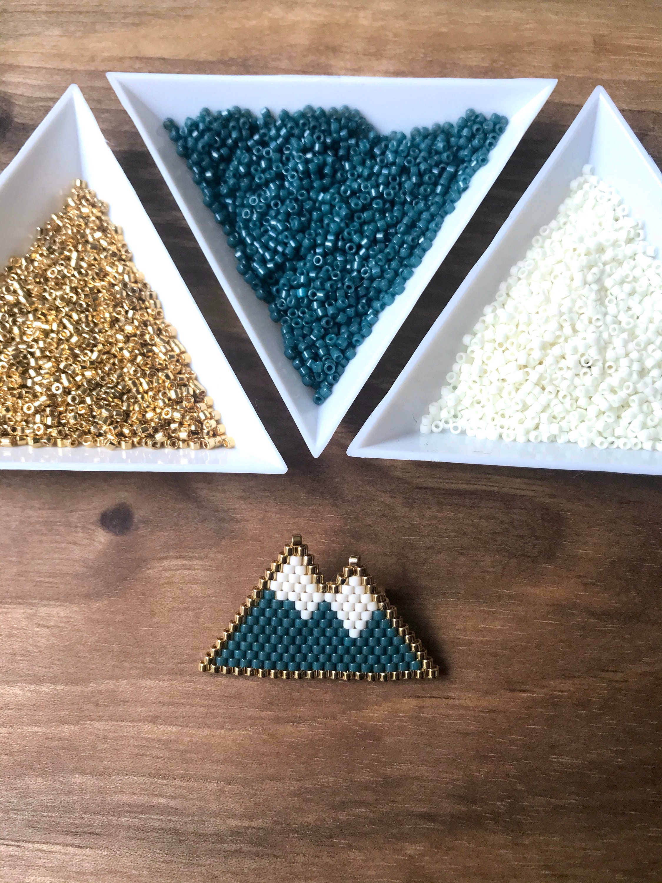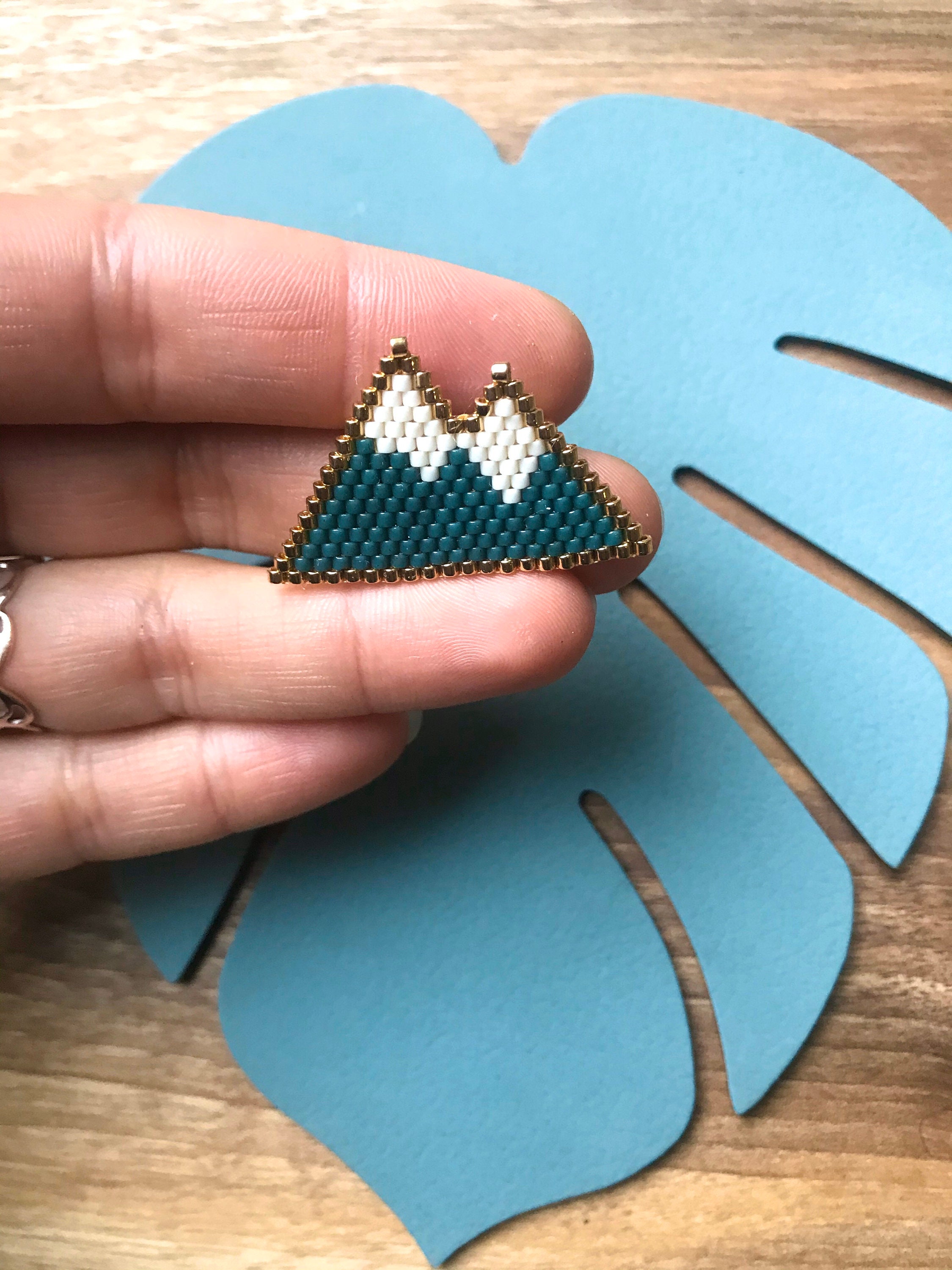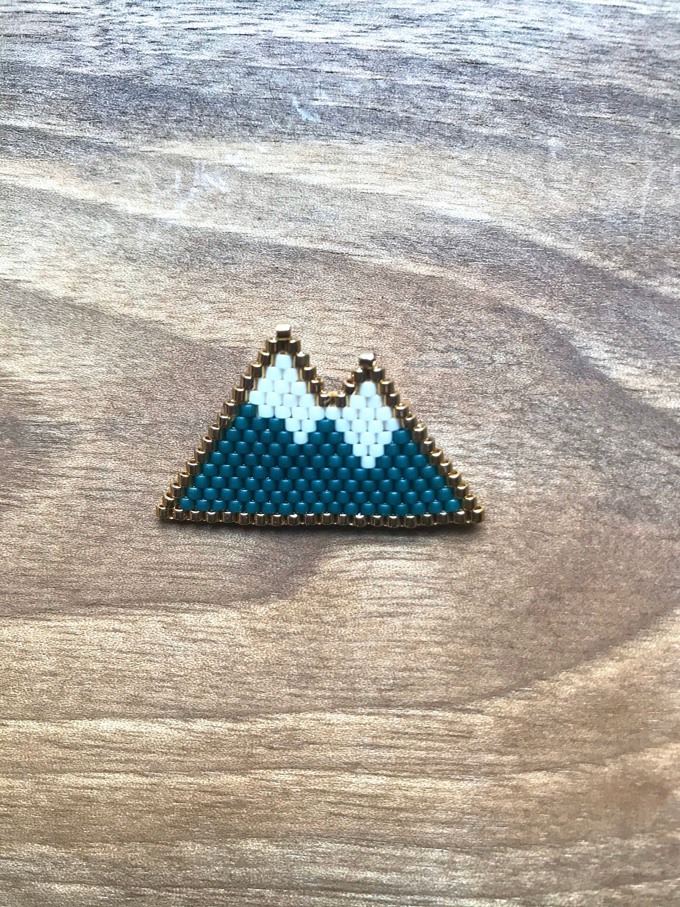 Snowy mountain brooch made of glass beads (Miyuki beads)