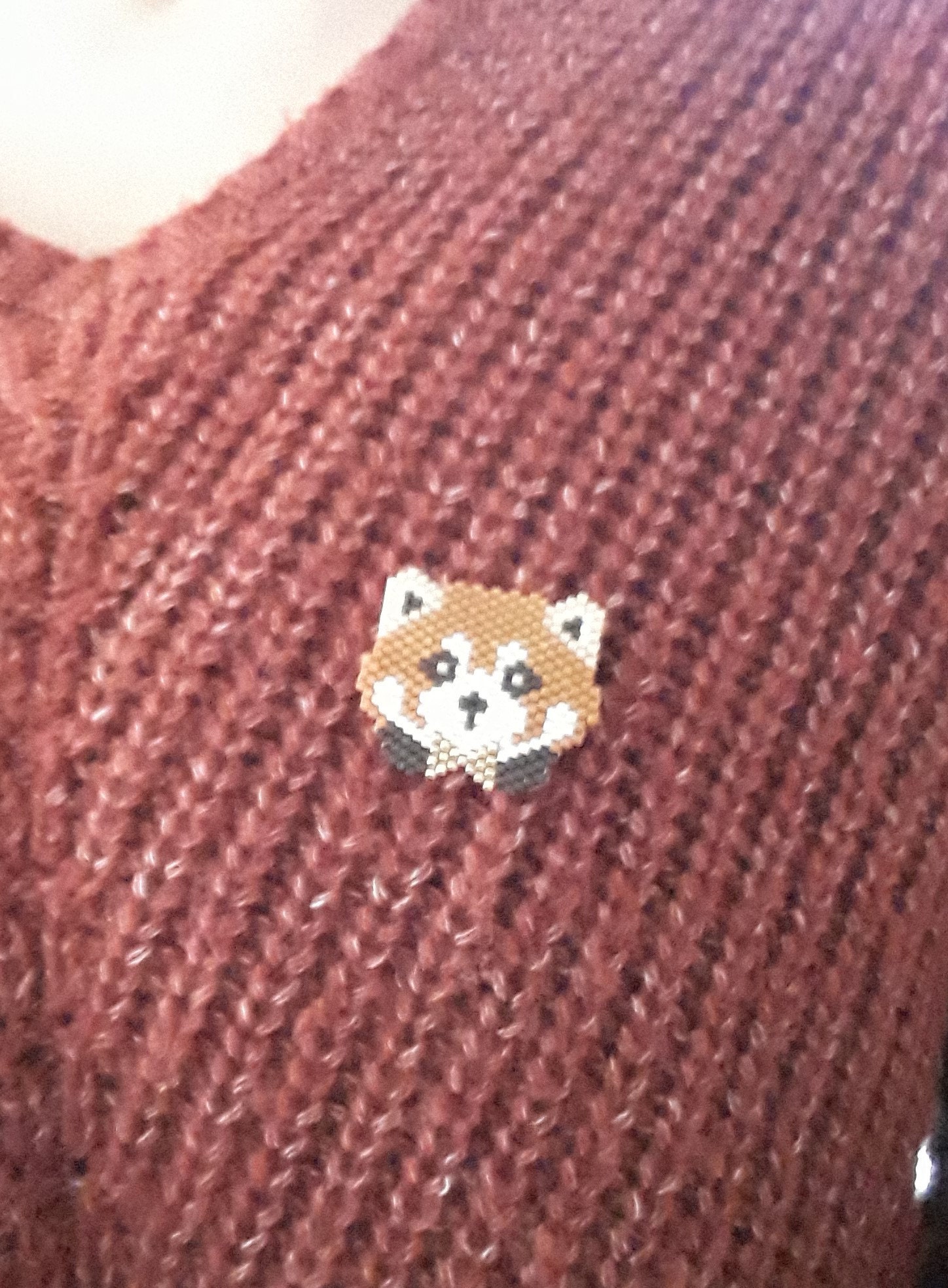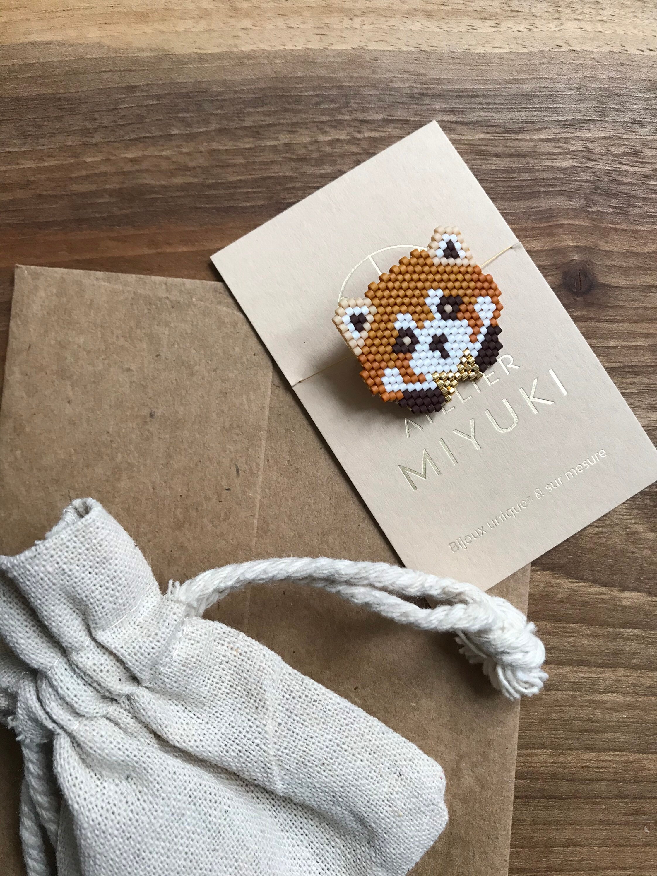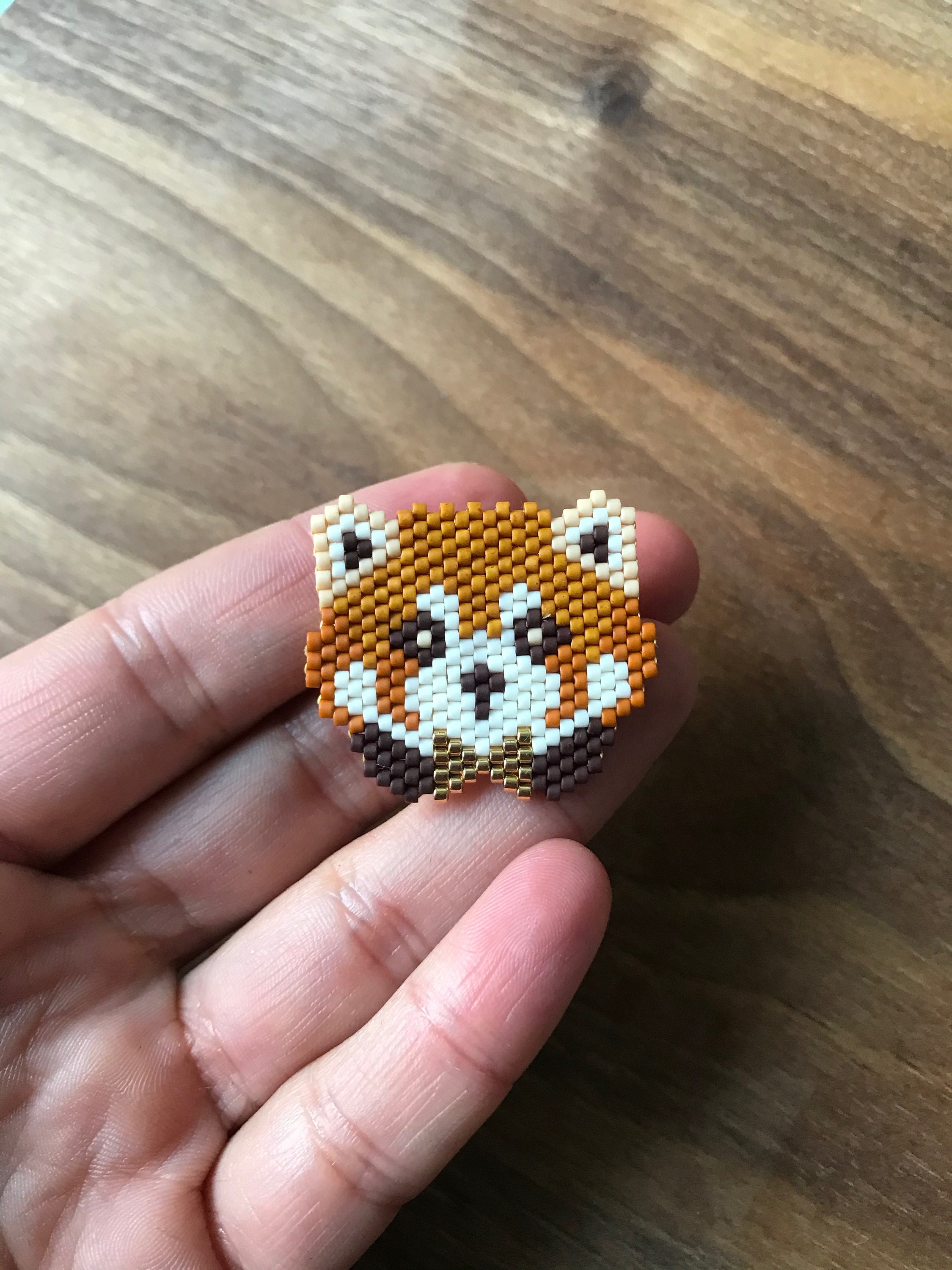 Roux Panda brooch made of glass beads (Miyuki beads)