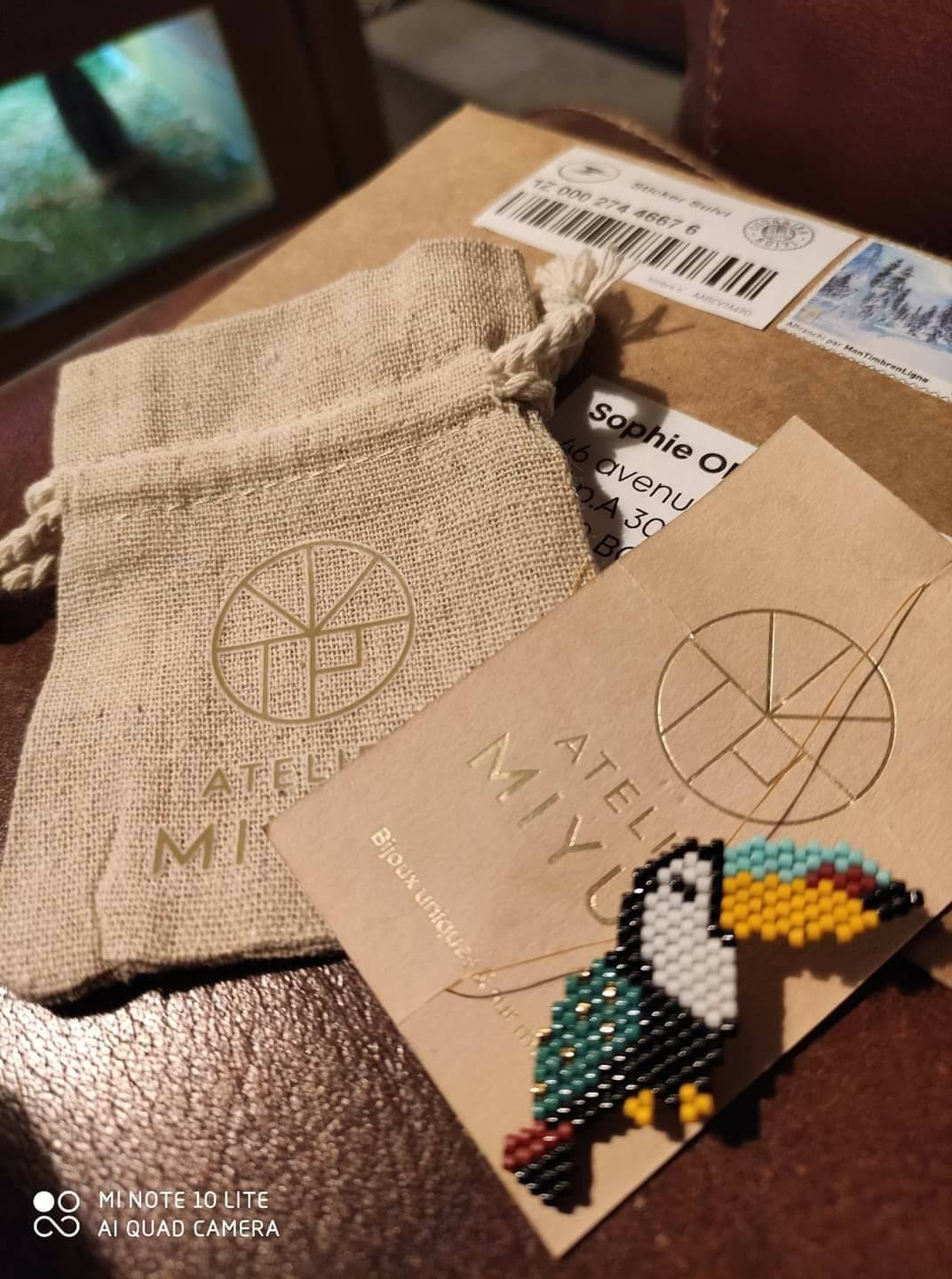Toucan shaped brooch made of glass beads (Miyuki beads)