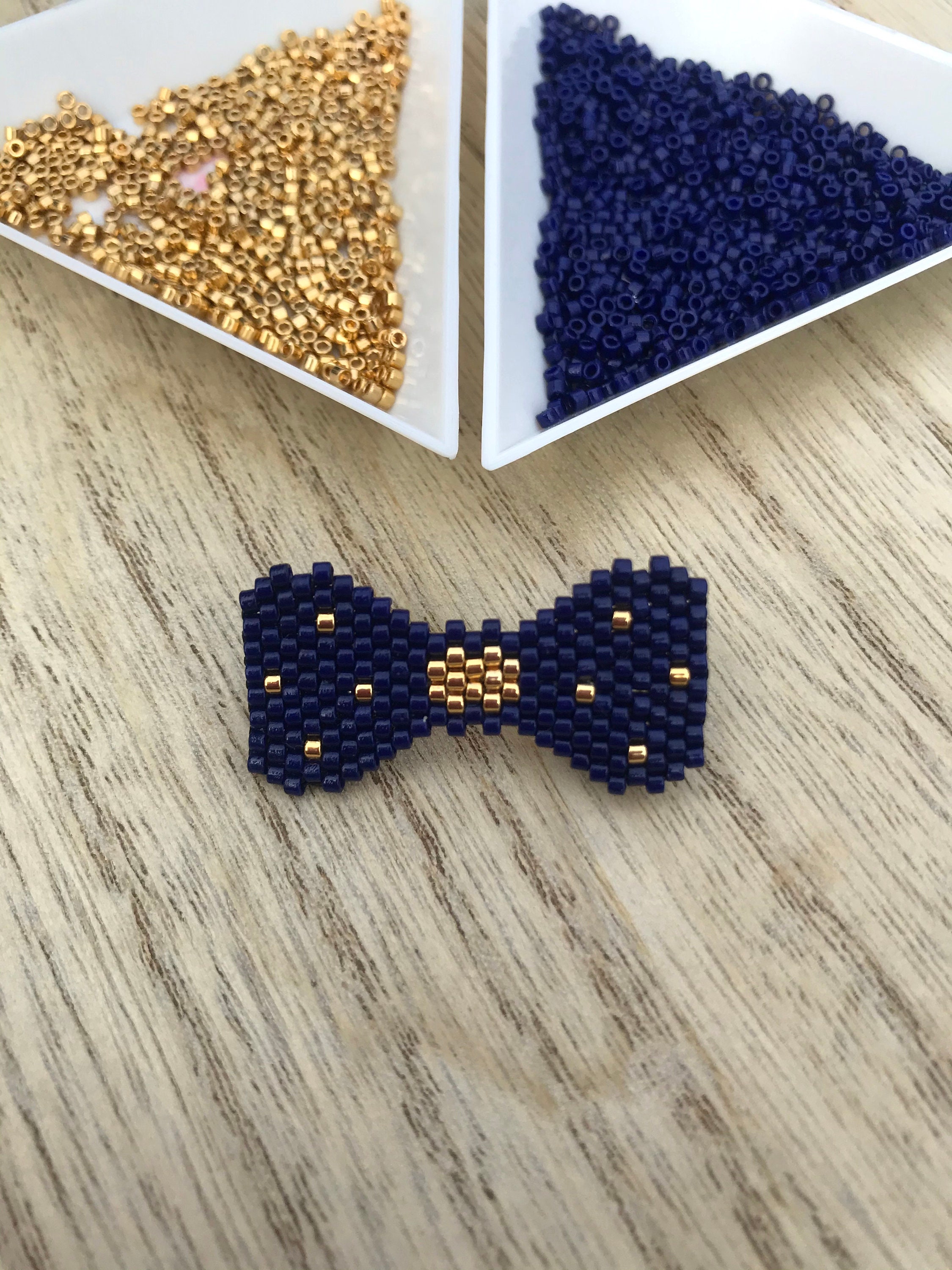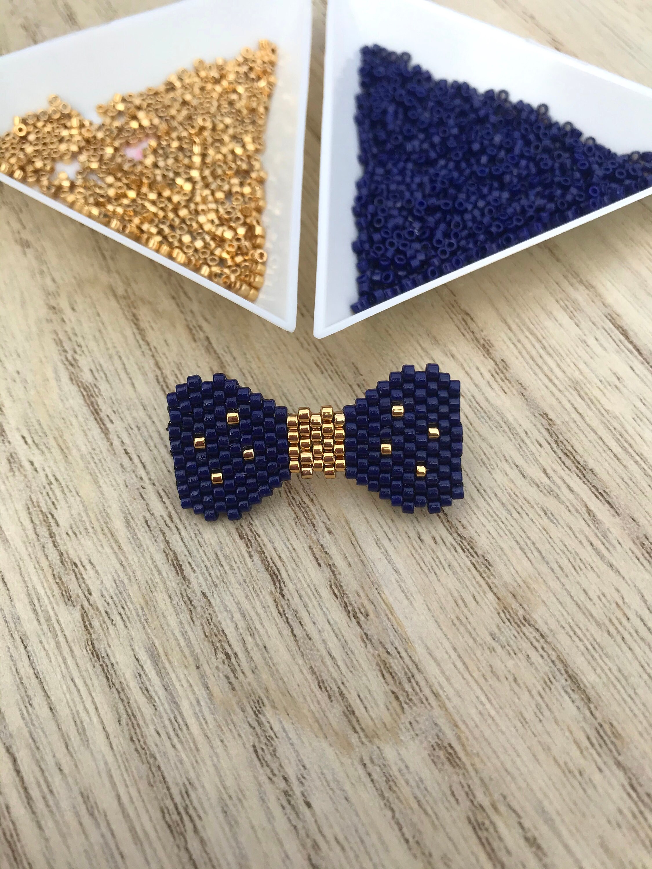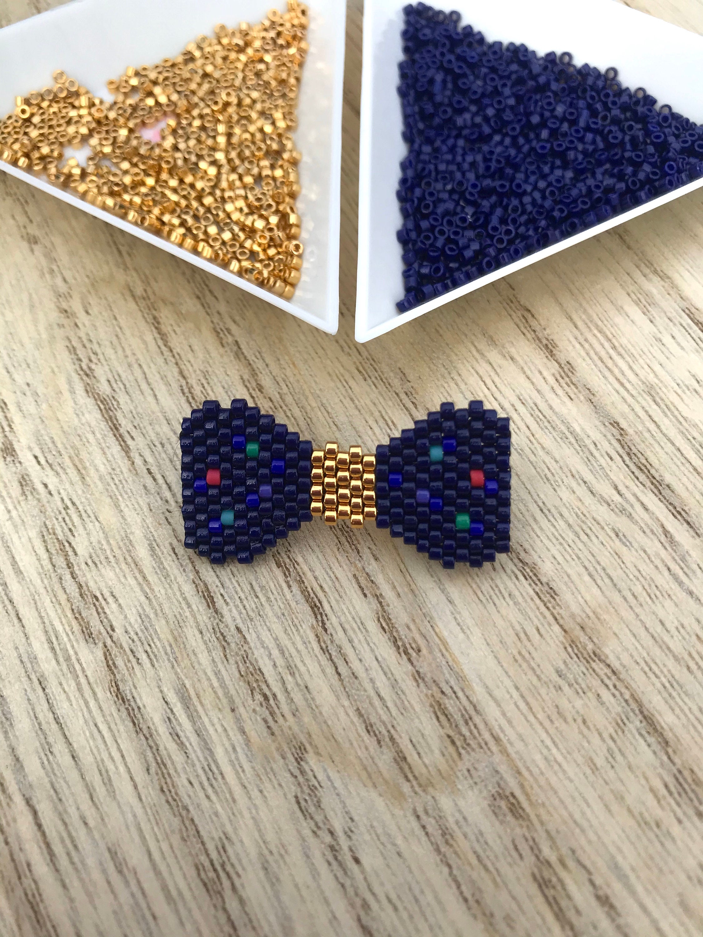 Bow Tie Brooch made of glass beads (Miyuki beads)