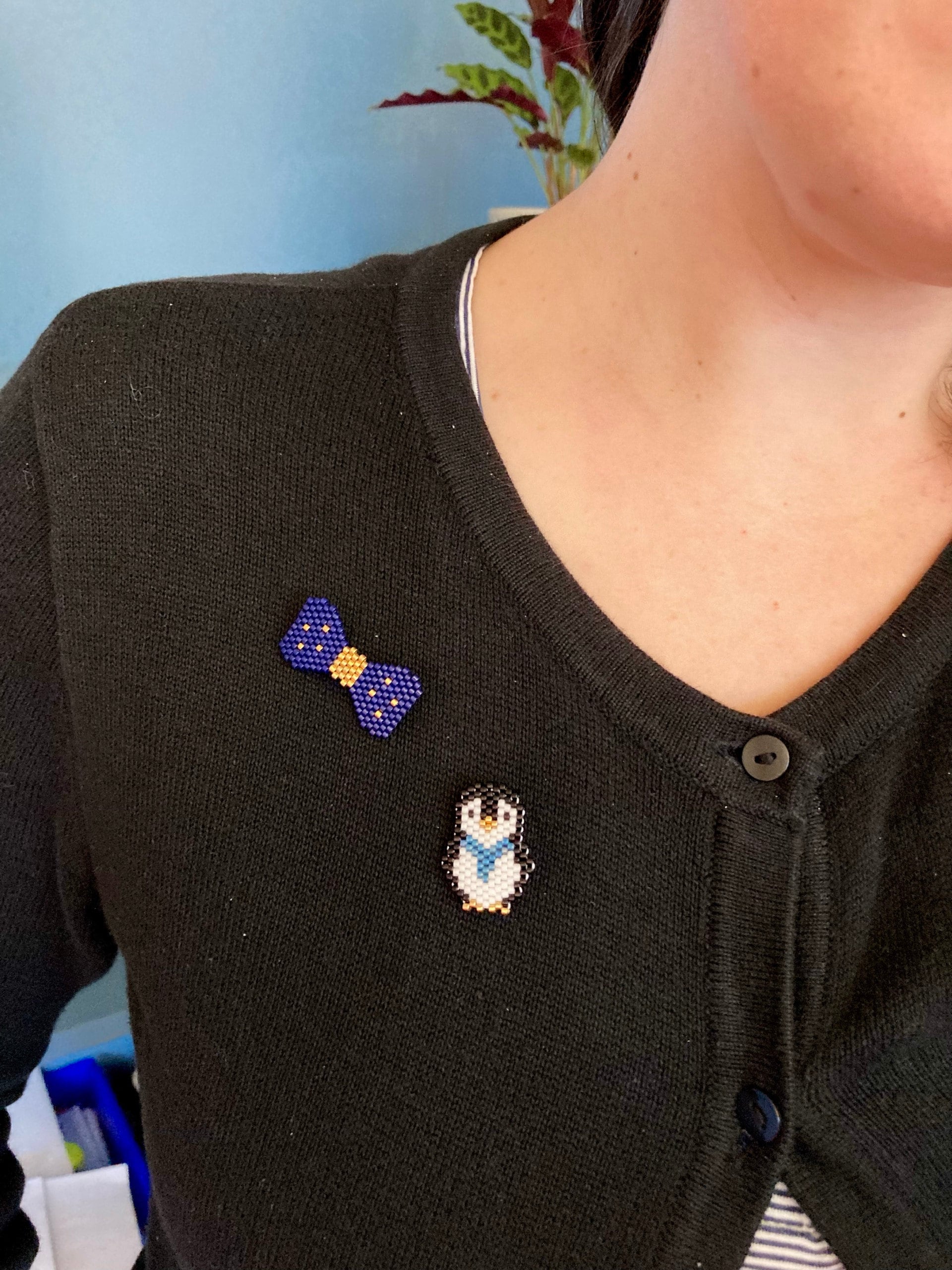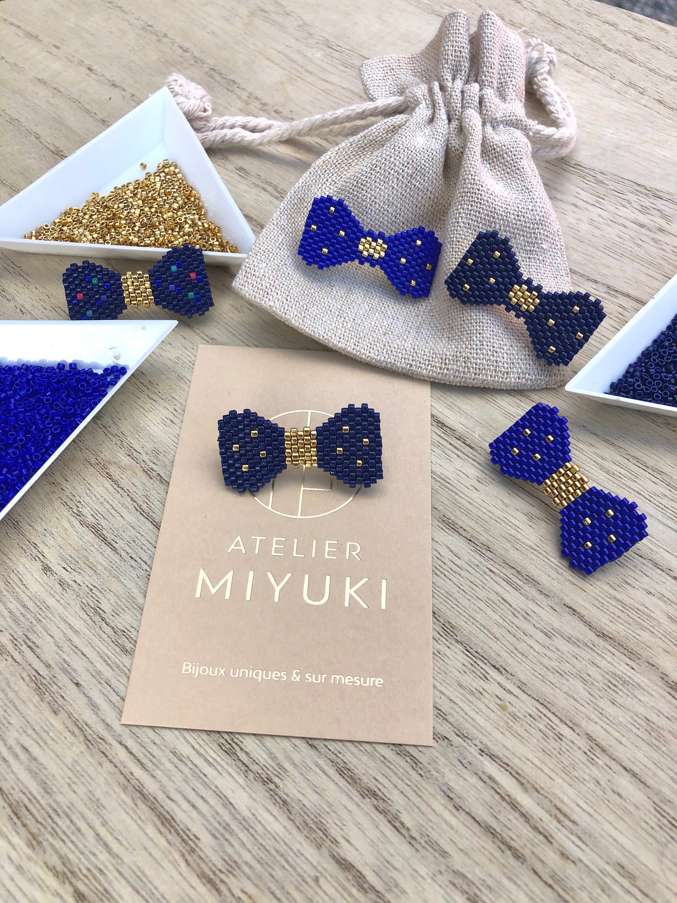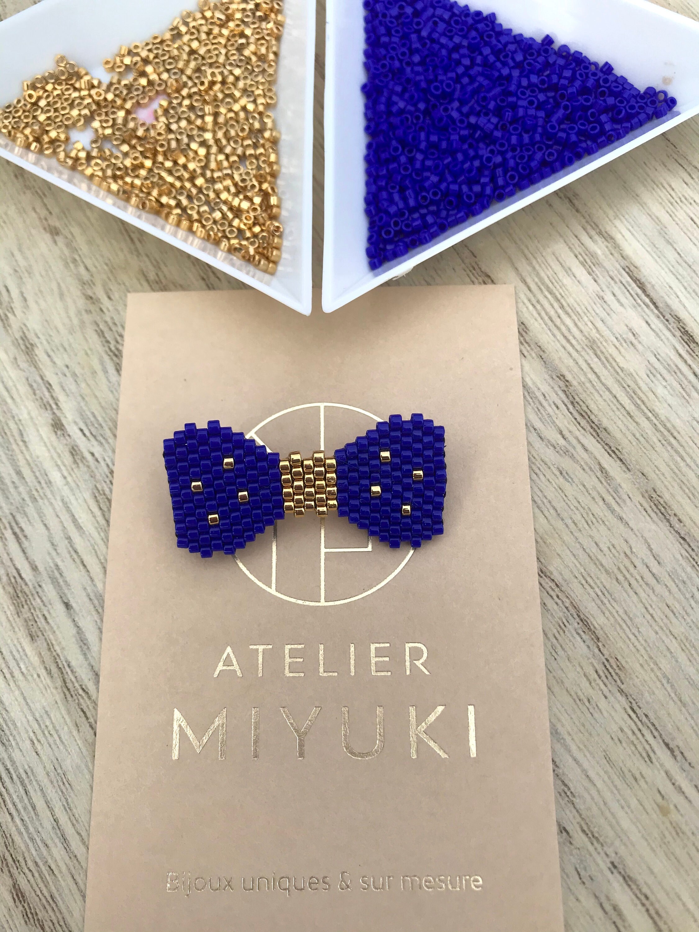 Bow Tie Brooch made of glass beads (Miyuki beads)