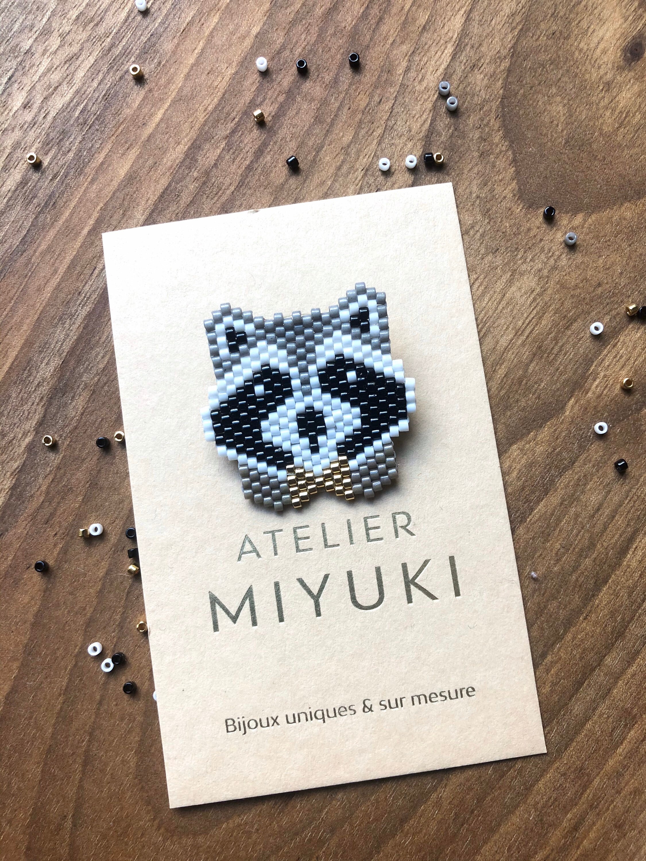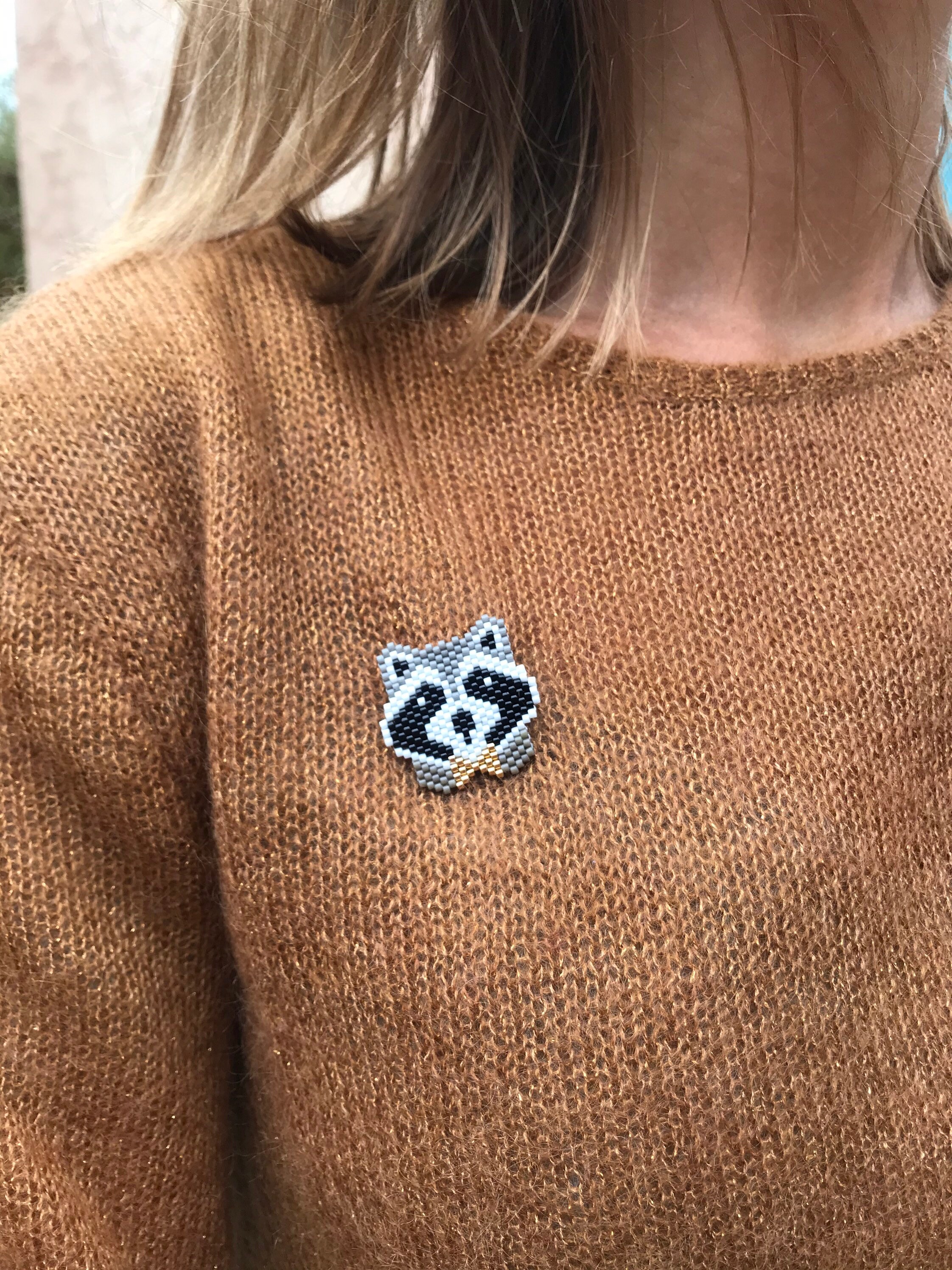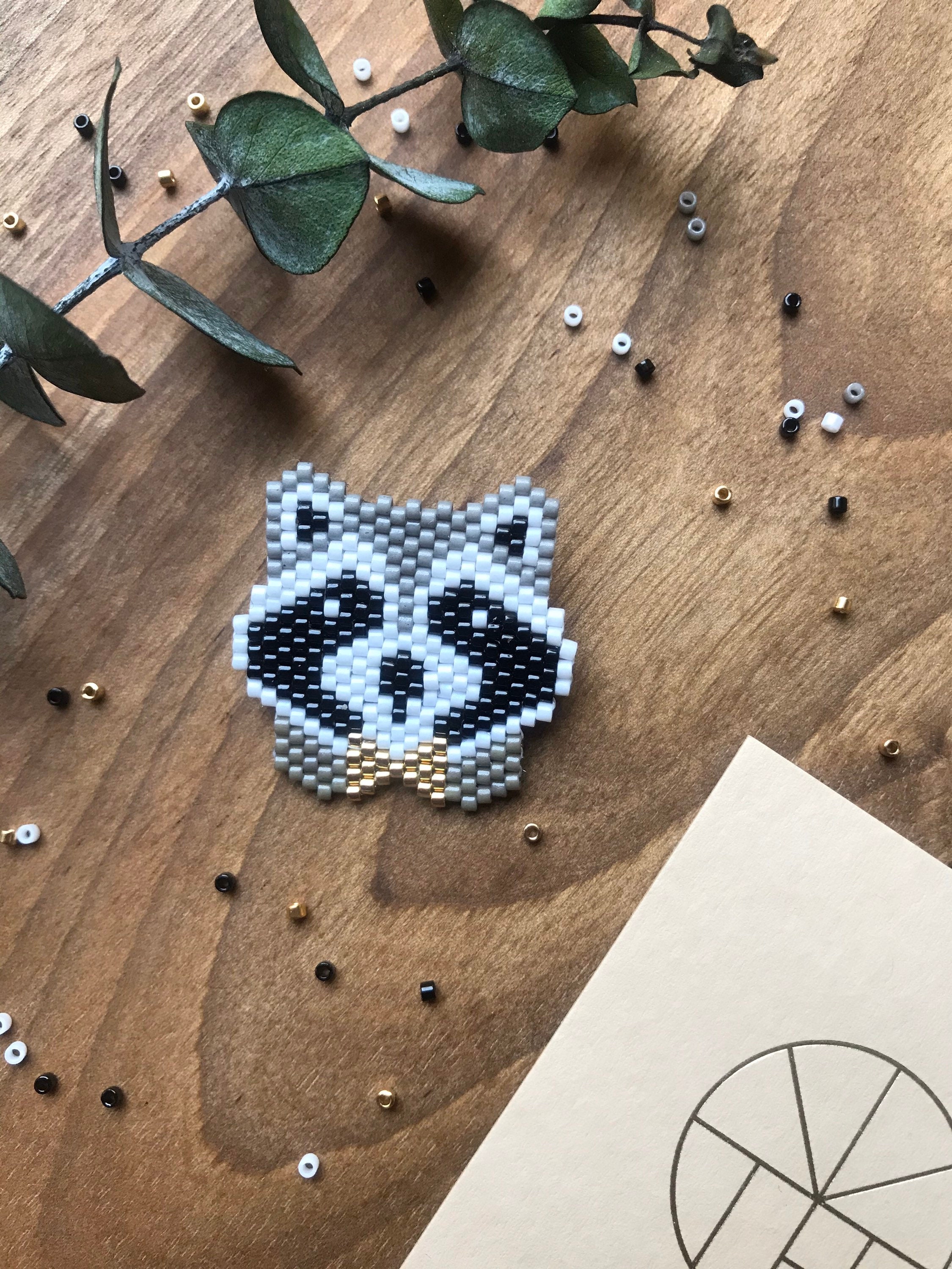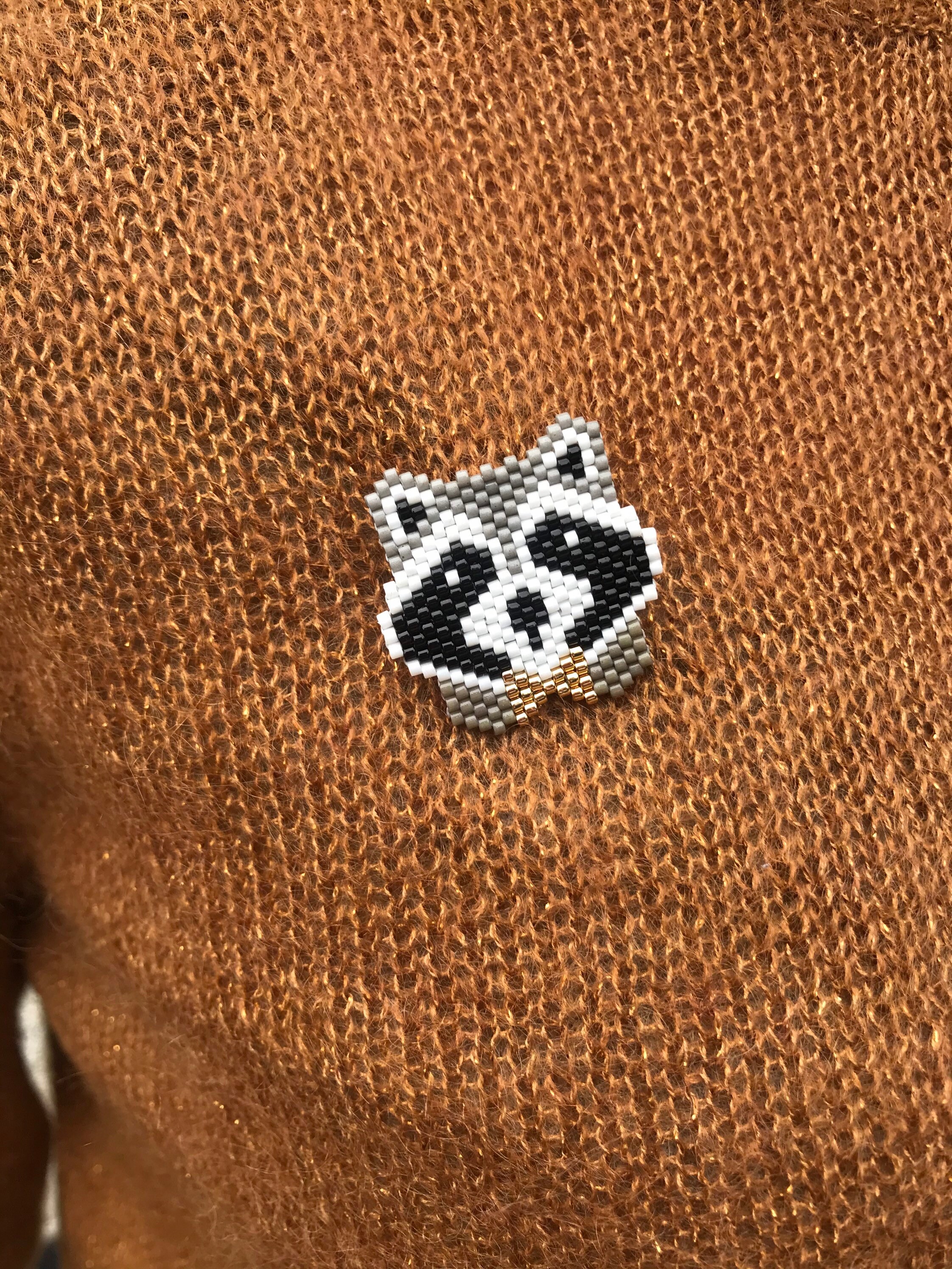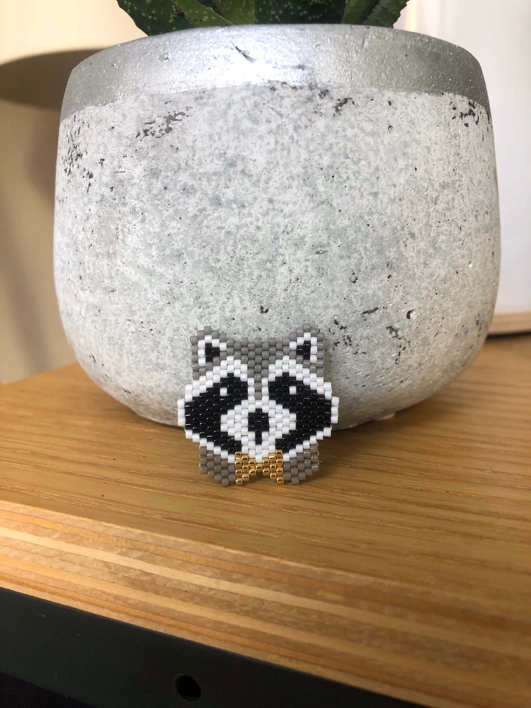 Raccoon Brooch made of glass beads (Miyuki beads)